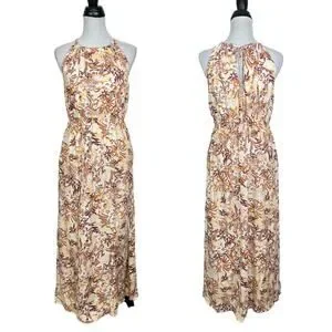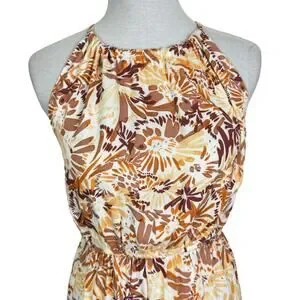 Joie | Orange & Brown Floral Print Halter Neck Sleeveless High Waist Maxi Dress