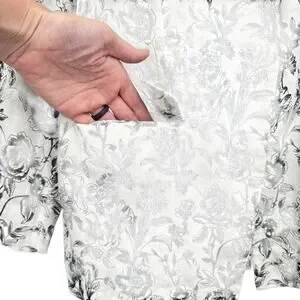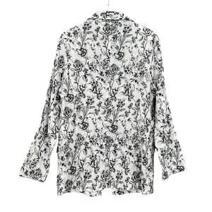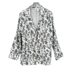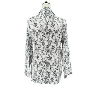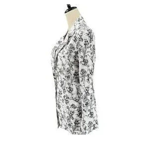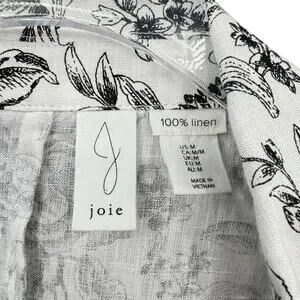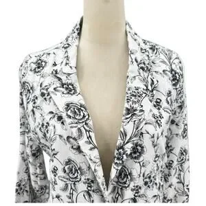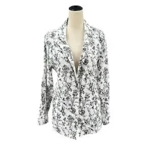 Joie Black & White Floral Print 100 Linen Longline Business Casual Blazer Jacket