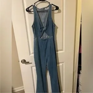 Windsor Blue Denim Flared Jumpsuit w/ Cutout & Ring Detail | Size 6