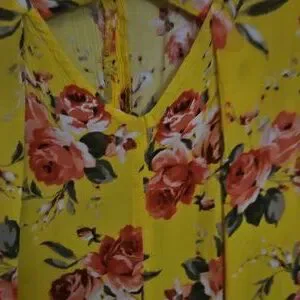 Gorgeous Anthro Umgee dress in the excellent condition. Bright yellow background with pink floral patterning. Long sleeved. Rear button closure. Bust measures 24 inches and the length from shoulder to hem is 34 inches. Very nice in a size 1X.