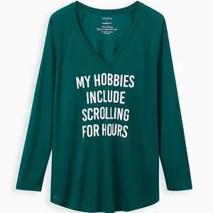 Torrid - Classic Fit Raglan Tee - Hobbies Scroll Green, Plus 00, M/L, Size 10