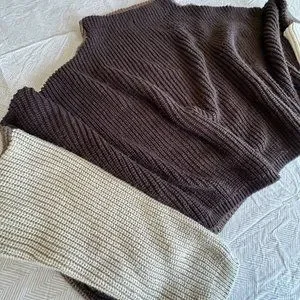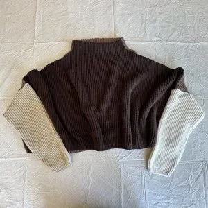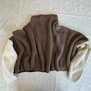 For sale is this Pretty Little Things Brown/Tan Cropped Oversized Sweater Mock Neck