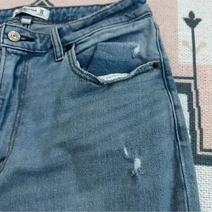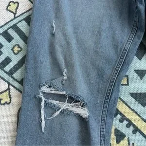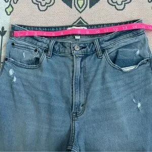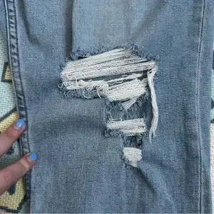 Abercrombie & Fitch Light Wash Ripped Curve Love High Rise Mom Jean, size 30/10 Regular. Light stretch but still has that fashionable rigid look. Slightly tapered leg. All flaws and measurements are represented in the photos. Questions welcome!