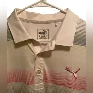 Puma Men's Striped Polo Shirt - Size Medium. Good condition