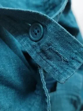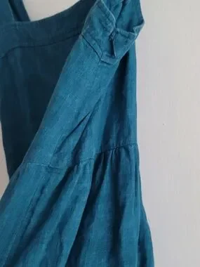 Eileen Fisher Organic Linen Tiered Midi Dress Blue Square Neck Coastal Summer. Size XXS. Very good used condition. No stains or holes. Light wash wear around zipper, pictured.