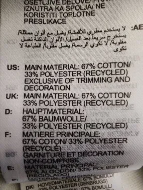Material: 67% Cotton, 33% Recycled Polyester