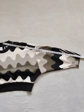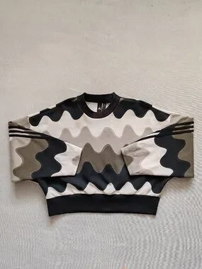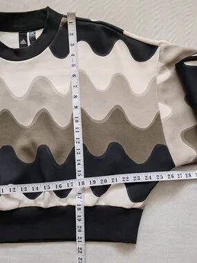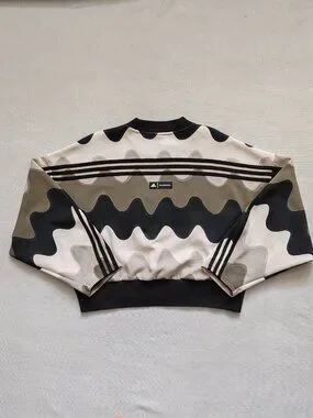 Adidas x Marimekko Laine Wave Print Cropped Sweatshirt - Green/Beige - Size L