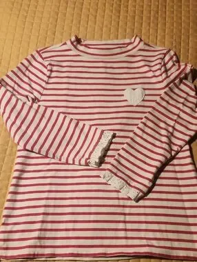 Talbots Pink and White Striped Long Sleeve Top with Heart Applique