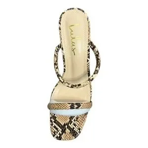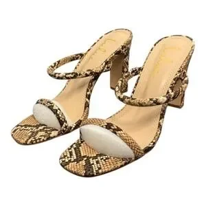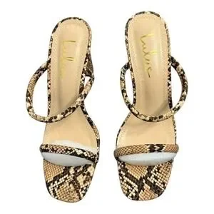 Lulus Xenya Tan Multi Snake Print Square Toe High Heel Sandals 7.5 NIB