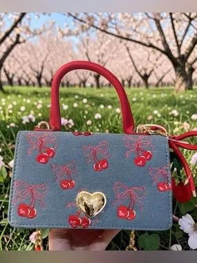 LUV BETSEY BETSEY Johnson denim and cherry Crossbody top Handel bag NWT