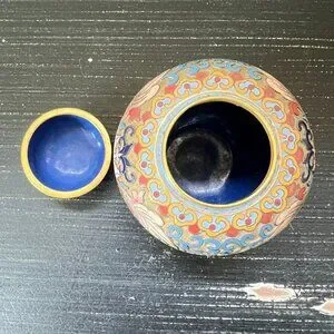 Vintage Chinese Cloisonné Enamel Floral Scroll Lotus Ginger Jar With Lid Etched