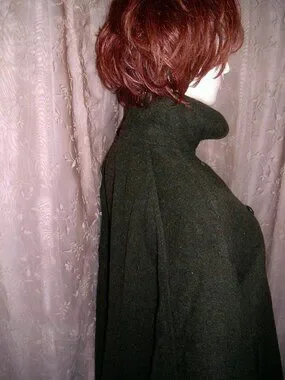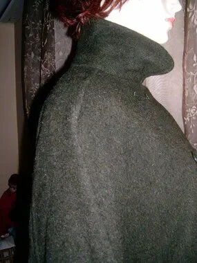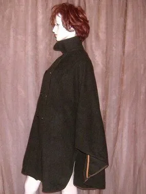 This cape is in very good condition , however the top right button is missing. Not a problem with the collar turned down but even as is it is still lovely.