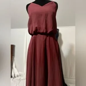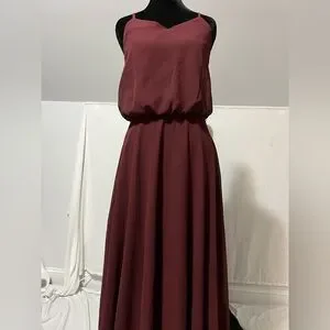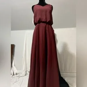Elegant Maxi Chiffon Bridesmaid Dress Sleeveless Prom Evening Party Size S Wine