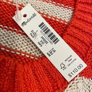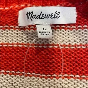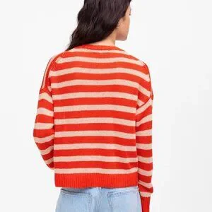 Madewell NU918 Linen Drop Shoulder Striped Lightweight Open Weave Sweater Large