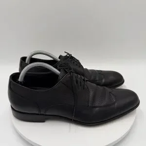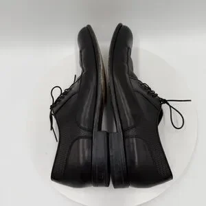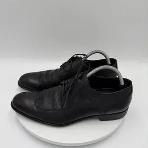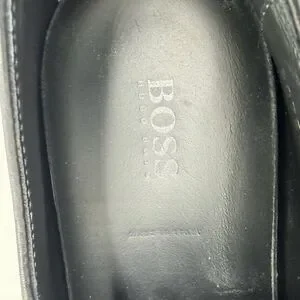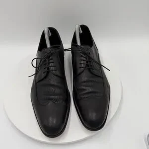 Hugo Boss Men’s 8 Black Leather Derby Wingtip Dress Shoes Woven Panels Lace-Up