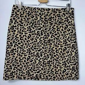 Talbots animal print skirt in excellent used condition. Fully lined with a side zipper closure. Made from a cotton/spandex blend. See photos for measurements.