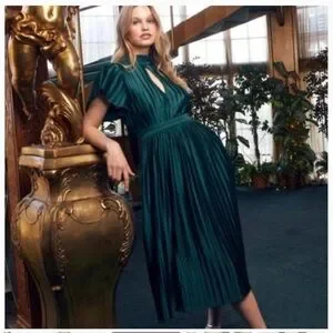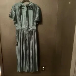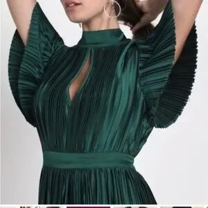 NWT LULUS Radiant Reverie Emerald Plisse Short Sleeve Backless Midi