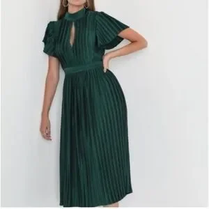 Step out in style with this elegant green pleated dress. Perfect for any occasion, its chic design and vibrant color make it a must-have in your wardrobe.
