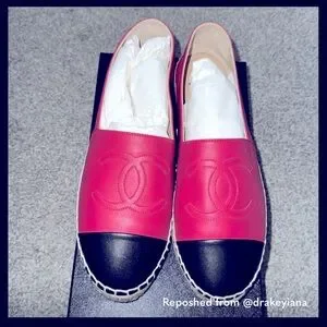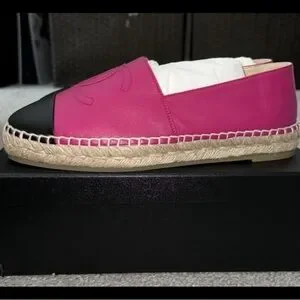 CHANEL Pink and Black Leather Espadrilles