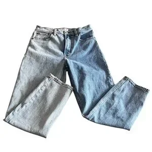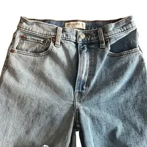 Abercrombie mom jeans, Abercrombie high rise jeans, women mom jeans, vintage style denim, two tone jeans, straight leg mom jeans, high waist denim, classic mom fit jeans, casual everyday jeans, size 4 jeans