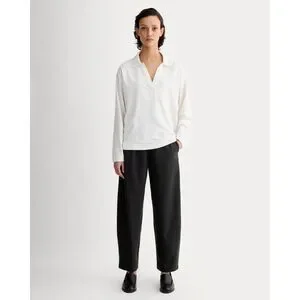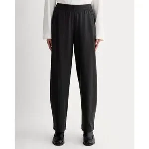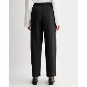 Everlane The Off-Duty Barrel Pant in classic black. Designed with a modern barrel-leg silhouette, featuring a relaxed fit through the hips and a subtle taper at the ankle for a clean, contemporary look. Elastic waistband for comfort and easy wear.