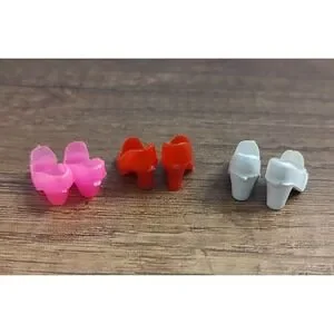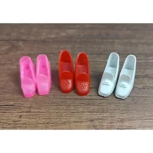 Vtg Barbie Size Shoes Lot Of 3 Pair Red Pink White Chunky Heels Unbranded Z11