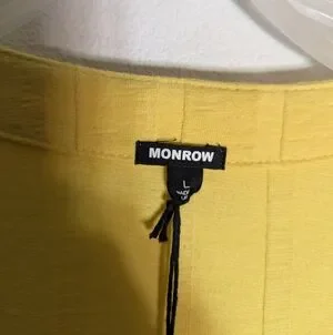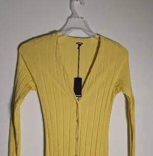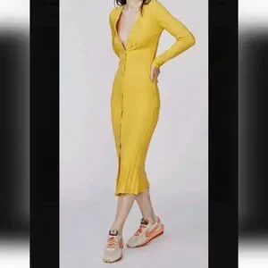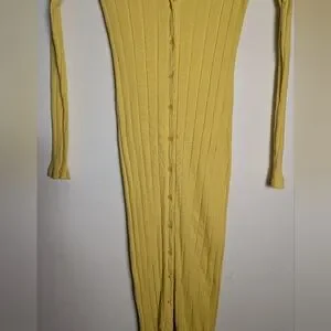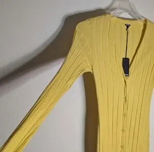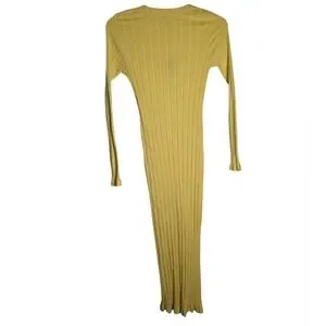 Monrow Women's Butter Yellow Flat-Rib Midi Cardigan Dress NWT Long Sleeve Large