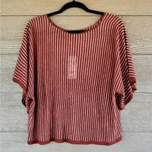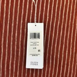 Eileen Fisher Organic Linen NWT Striped Rust Top -Sz L (Originally $148)