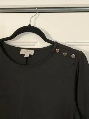 LOFT Black Long-Sleeve Shift Dress with Shoulder Buttons