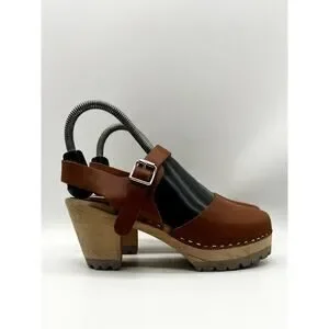 Freja Clogs Women Size 6.5 Cinnamon Brown Leather Sweden Wood Rubber Base Mules