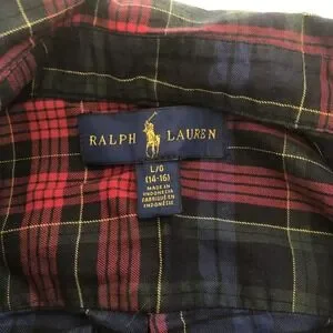 Ralph Lauren Boys Madras Plaid (Red, Blue, Green) Long Sleeve Button-Up - Sz L/G