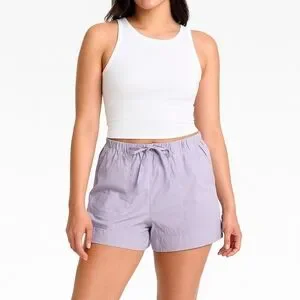 Lightweight, flowy, and ultra-comfy Lululemon Garudasana woven shorts in a soft lavender / lilac colorway. These are a relaxed, easygoing style made from Lululemon’s smooth woven fabric with a Swift-like feel, perfect for warm weather, travel, and everyday wear.