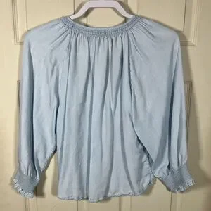 Rails Mariah Light Vintage Blue Lyocell Blouse Smocked Boho Top M