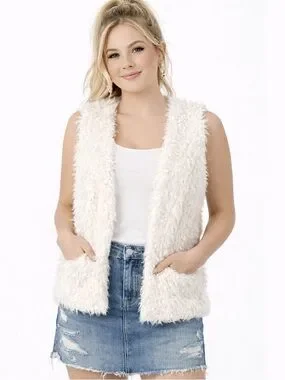 🌼 New Look Women’s Shaggy Faux Fur Vest – Ivory/Cream – Size XL