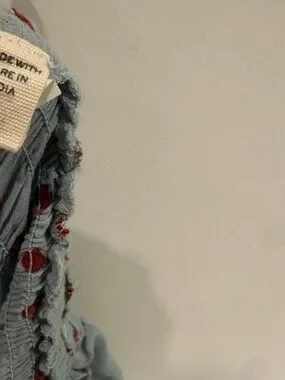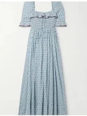 Doen Sol Blue RED Pol Ka Dot Ruffle Maxi Dress