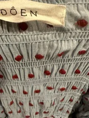 Doen + Net Sustain Sol Swiss Dot Blue & Red/Crimson/Maroon Dress.