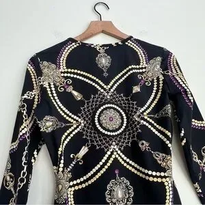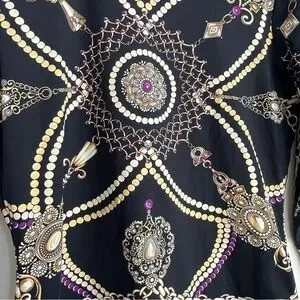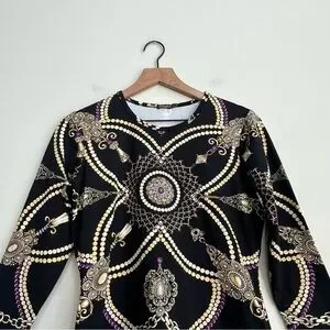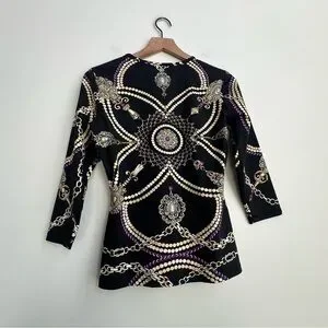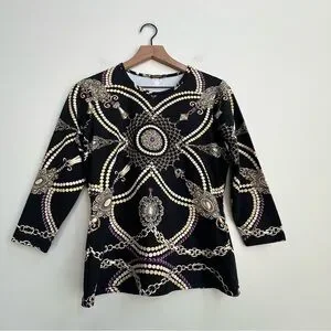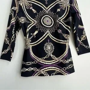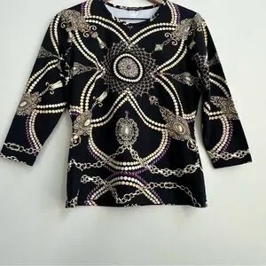 J. McLAUGHLIN Catalina Cloth Signature Tee 3/4 Sleeve Top Chain Jewels Small