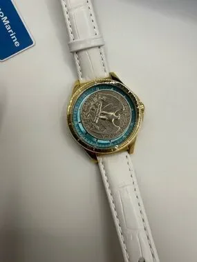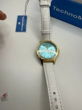TechnoMarine Women’s Gold-Tone Watch with Turquoise Dial and White Strap 36mm