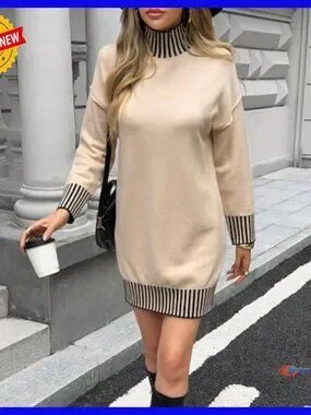 Long Sleeve Mock Neck Mini Sweater Dress Casual Fall Knit