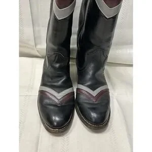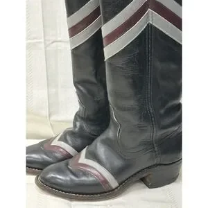Vintage Miss Capezio Women's 5.5 Western Cowboy Boots Black Leather V-Stripe
