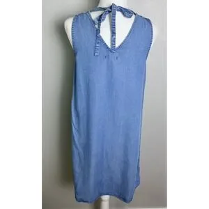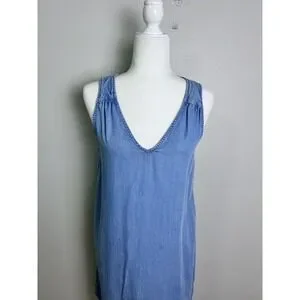 Gap Denim Tank Shift Dress Tie Back V-Neck Chambray Knee Length Small