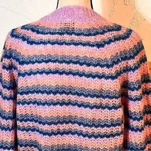 Cute crew neck striped sweater made of a soft mohair and wool. Ribbing around the neckline, cuffs and hemline. In excellent pre-loved condition.