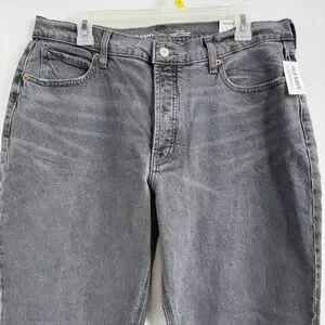 Old Navy High Rise Slouchy Straight Jeans Women 12 Charcoal Button Fly NWT