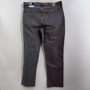 Old Navy Women's High-Rise Slouchy Straight Jeans size 12 NWT Charcoal wash raw hems secret slim pockets button fly