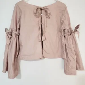 Free People So Obviously Yours Tie Bell Sleeve Button Back Top SizeSmall S. missing one button. A158