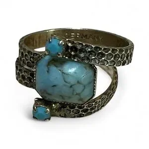 Vintage W Germany Blue Robbin’s Egg Brass Ring