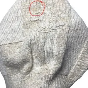 FLAW- See last photo for small rust stain, some areas of pilling/knit fuzz