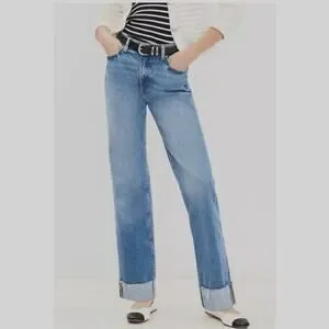 LOFT The Slouchy Boyfriend Cuffed Jeans Classic Blue Medium Wash Size 00/24