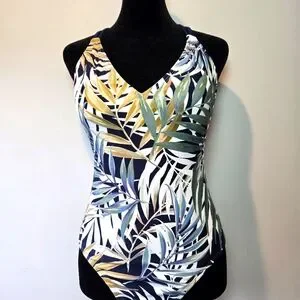 Hurley Swimsuit Medium Tropical Palm Tree Botanical Criss Cross Back One Piece