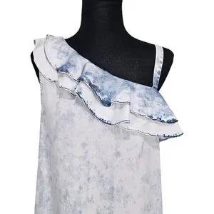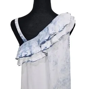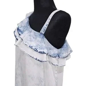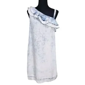 Holding Horses Womens Acid Wash Dress S Chambray Ruffle One Shoulder Boho Vacation